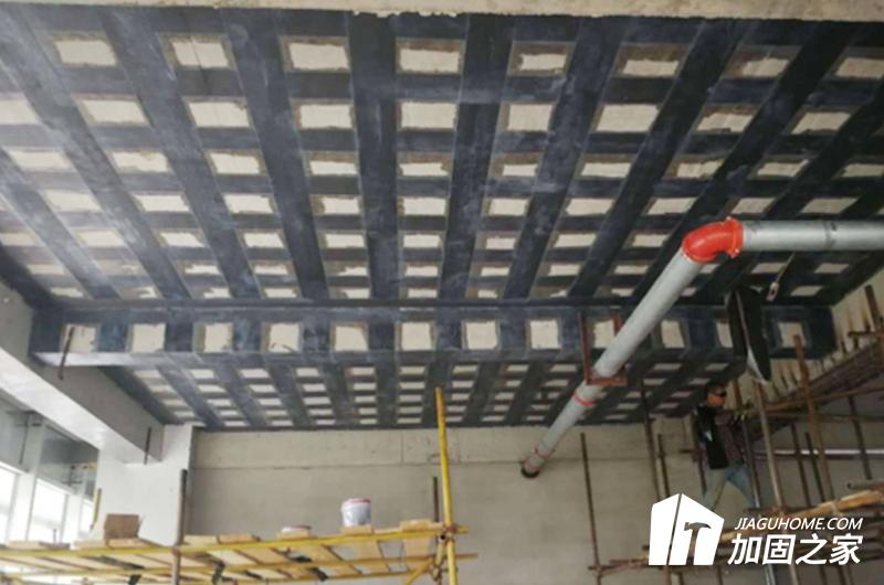 由于碳纖維布的抗拉能力非常強(qiáng)大,因此可以在樓板開洞中,若洞口對(duì)板受力影響小時(shí),還可在洞口周邊粘貼碳纖維布作為后加補(bǔ)償筋進(jìn)行加固。除此之外還可以用于受彎構(gòu)件的加固之中,將碳纖維布粘貼于建筑的梁、板、柱等結(jié)構(gòu)的底部受拉區(qū),可以有效代替或補(bǔ)充鋼筋的受拉性能,提高受彎構(gòu)件的承載力。
