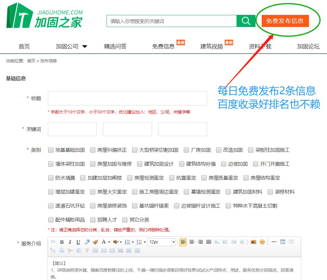 全國80%的建筑工程公司(加固/檢測鑒定/設(shè)計/材料)都已經(jīng)入駐加固之家了,就差你了。下面跟著小編來操作入駐加固之家(一個完全免費的行業(yè)推廣平臺)。